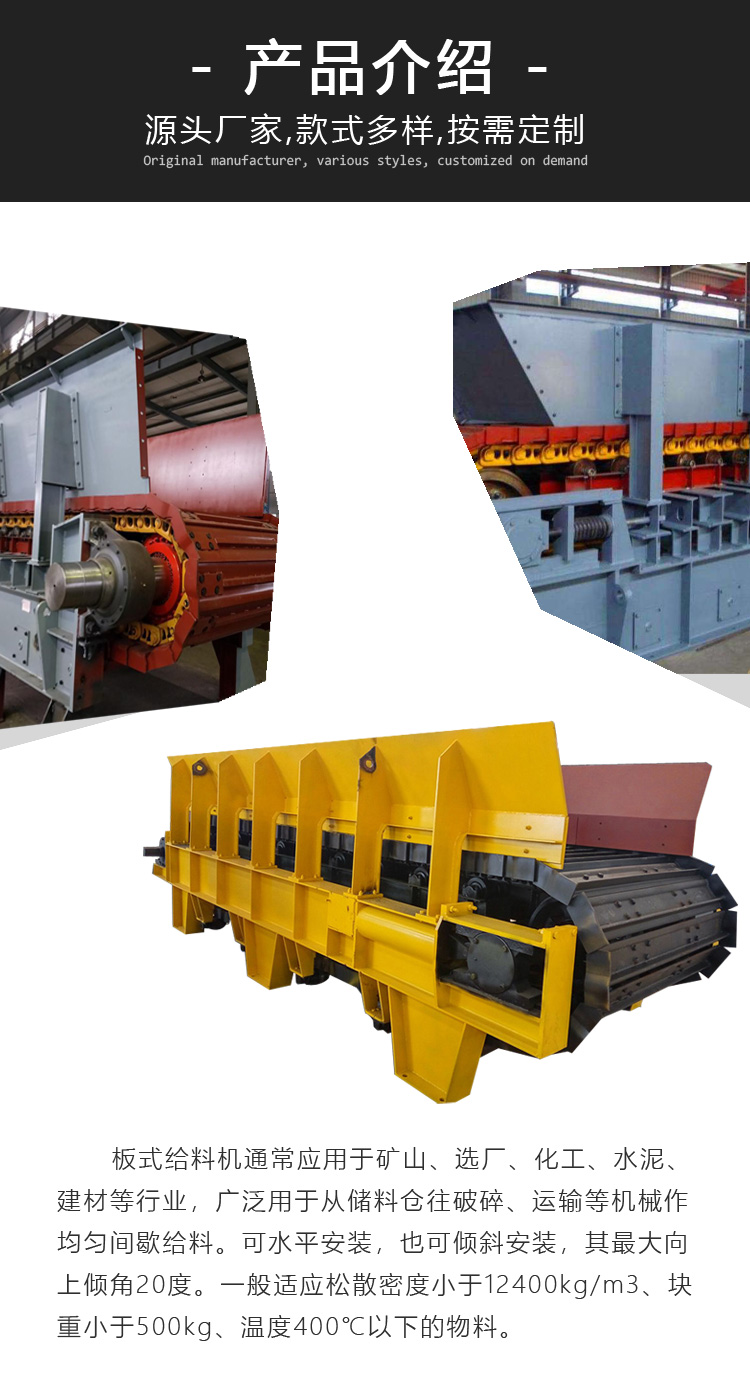板鏈式輸送機是一種連續(xù)性給料設備,適用于短距離塊狀物料的輸送,適合礦山、化工、水泥、建材等行業(yè)。
