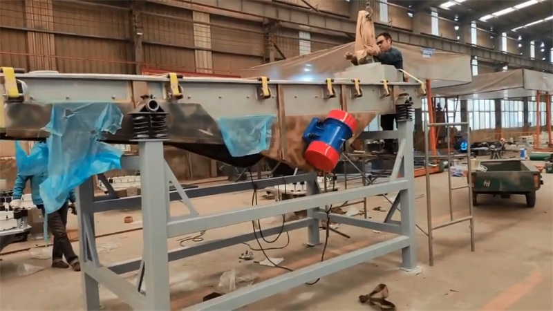 客戶定制Rcz1245-1風冷式直線篩,接觸物料304不銹鋼,進料高度2.5米,出料高度1.6米,篩下物前端出料對接噸包,篩上物側邊出料,配2*2mm不銹鋼編制網,電壓380V50hz三相電,上蓋用繃帶固定快速拆裝,不帶風機,進料口前端預留進風口。另配一張2*2mm,2.5*2.5mm的篩網。(按最終客戶確認的圖紙生產),不銹鋼噴砂處理。